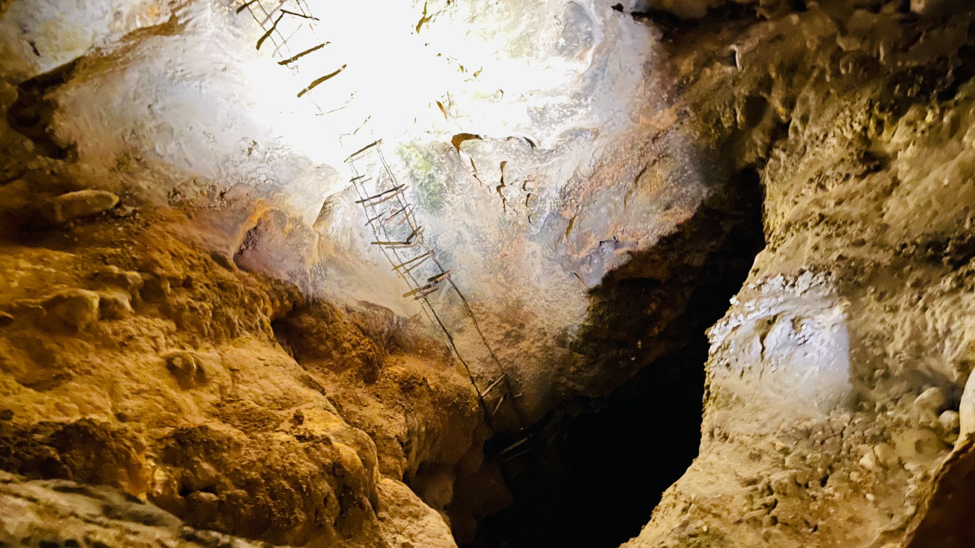 The ladder below is from an early exploration of the cave and it's survived just like this the whole time. I can't imagine people just got curious and dropped down into an unknown hole. Crazy!
