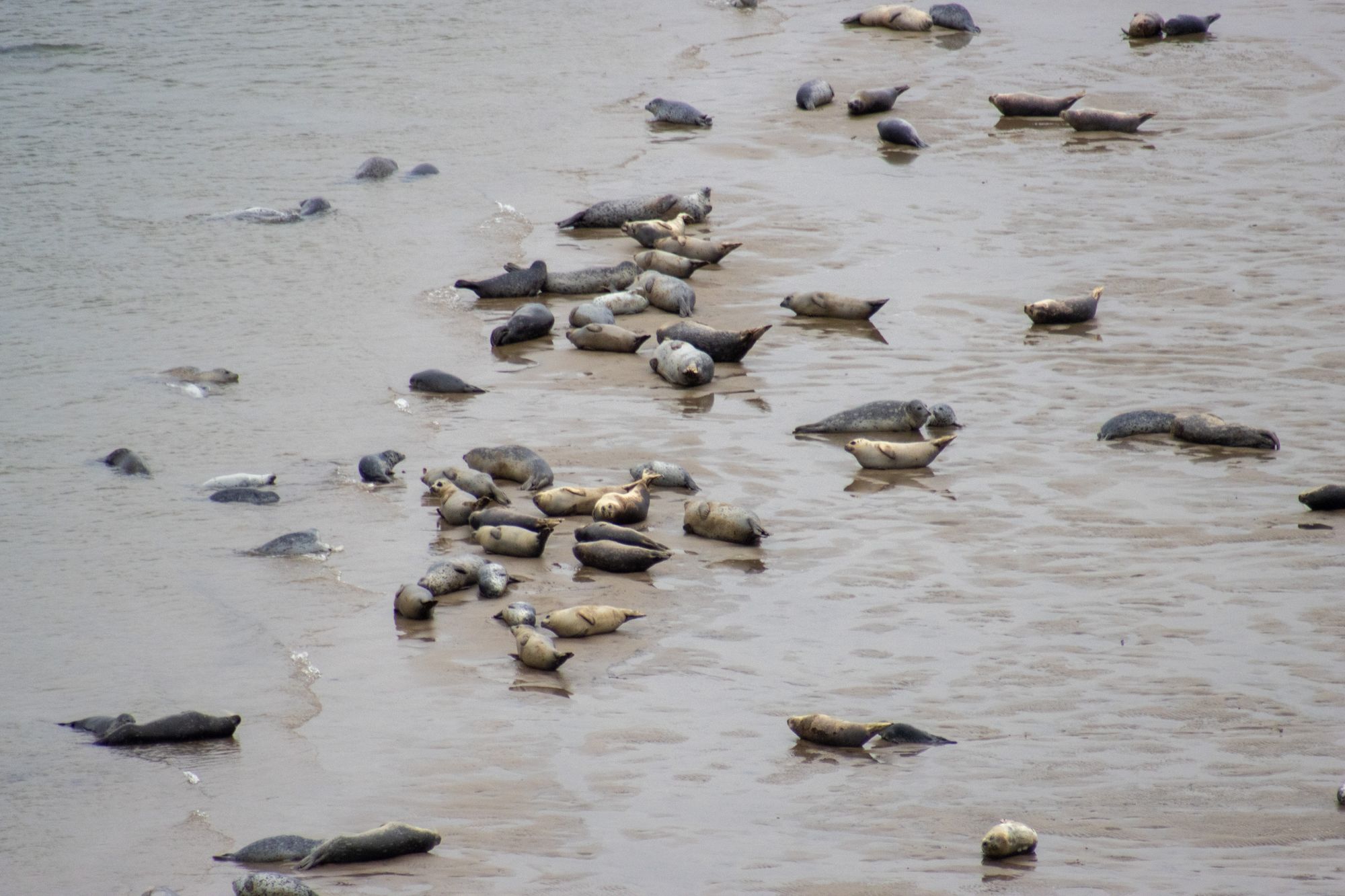 We're always on the lookout for wildlife and when we were driving over a bridge just south of Newport we saw a sandbar packed with seals. We parked and walked along the bridge and the some of the seals decided to put on quite the show for us!