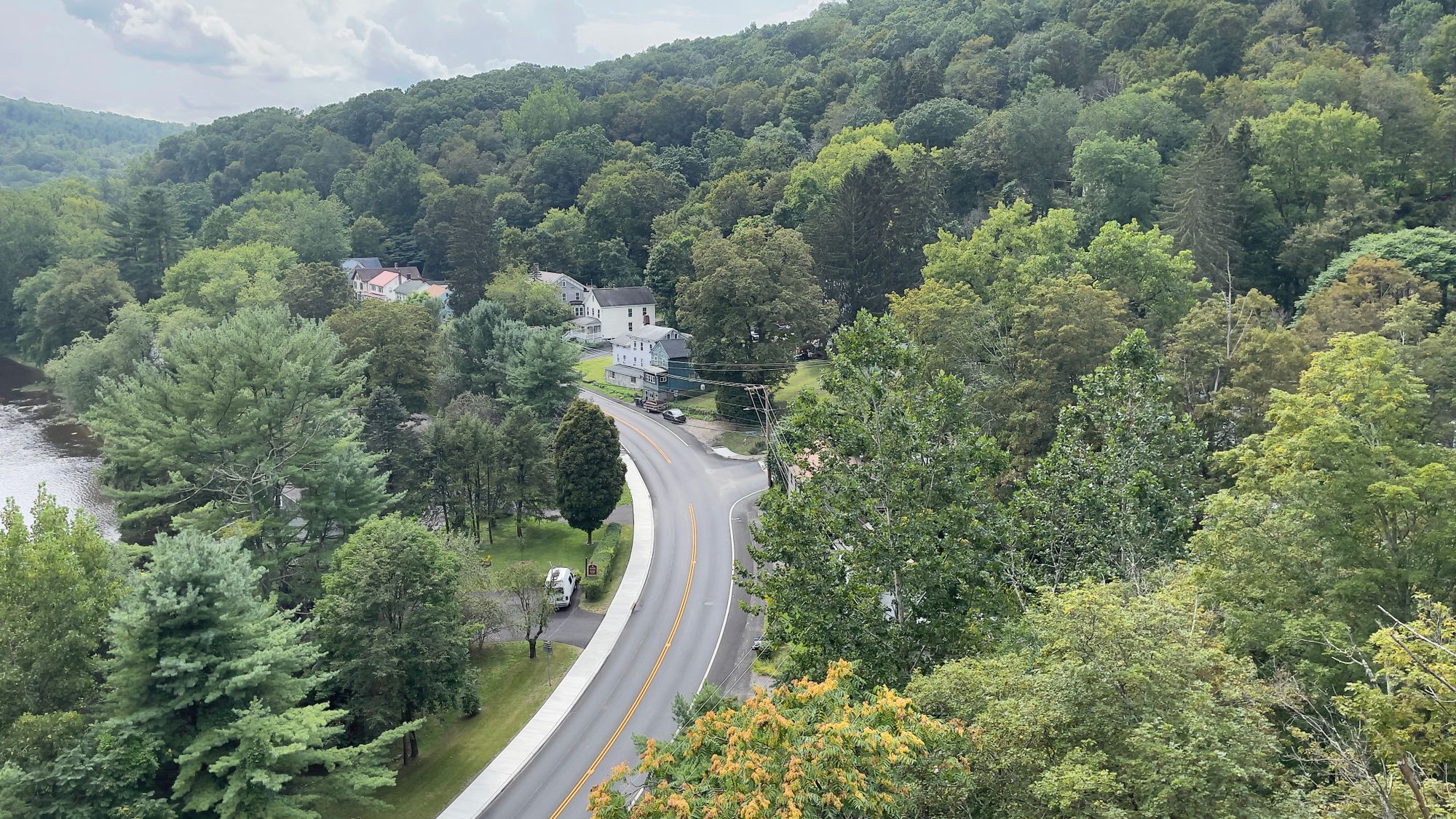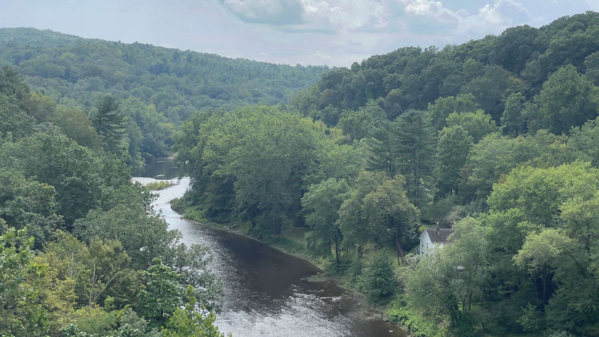 The Rosendale Trestle is an old train trestle converted into a pedestrian bridge in the town of Rosendale. The view from the top is stunning, and one of the most interesting finds is a cave on the path to the trestle that dumps out freezing cold air. It's hard to see in pictures, but we walked up on a foggy area, which is strange when it's 90 degrees outside. When we got closer we felt a frigid breeze coming from the cave. We've been in plenty of caves before but this one was by far the coolest (pun intended) I've ever experienced.